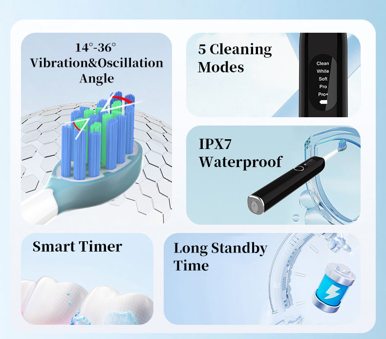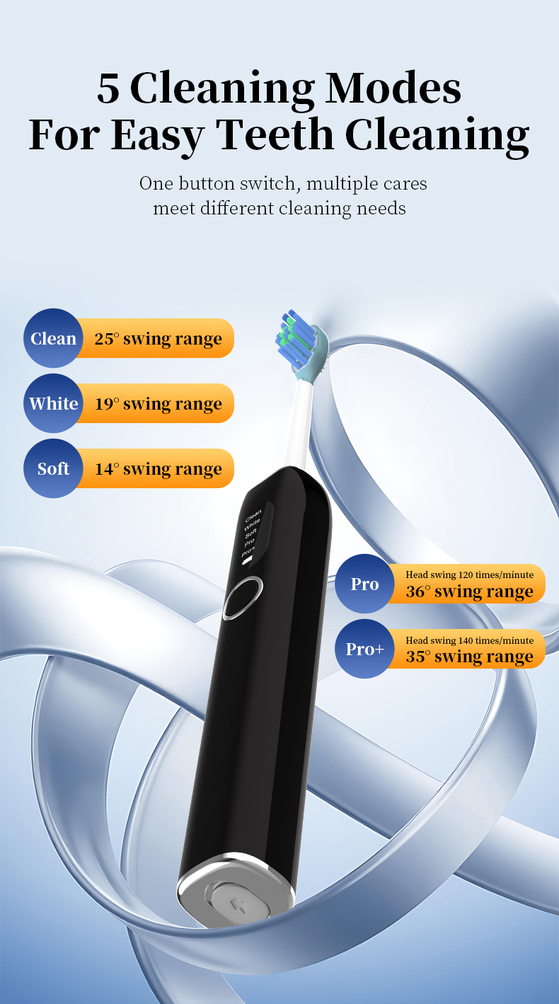 | 3.5 modes(Clean White soft pro pro+) can be choosed to clean the tooth. |