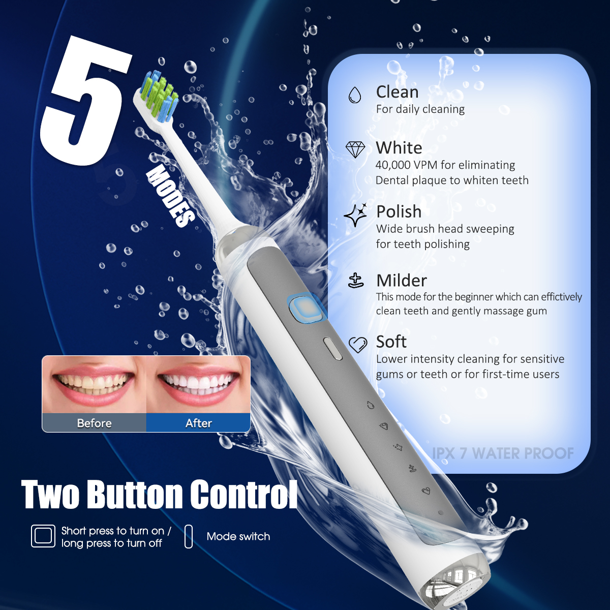| 3.5 modes(Clean White Polish Milder Soft) can be choosed to clean the tooth. |
